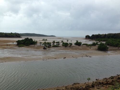 石垣島滞在中、テレビやネットで話題になっていたのが皆既月食だった。月食、つまりは満月の時期に当たる。大潮という、潮の満ち引きの差が大きい時期でもあった。 これは西表島のある海岸線の写真。 上は行きがけに撮った写真で干潮時。 下の写真は帰りに撮…